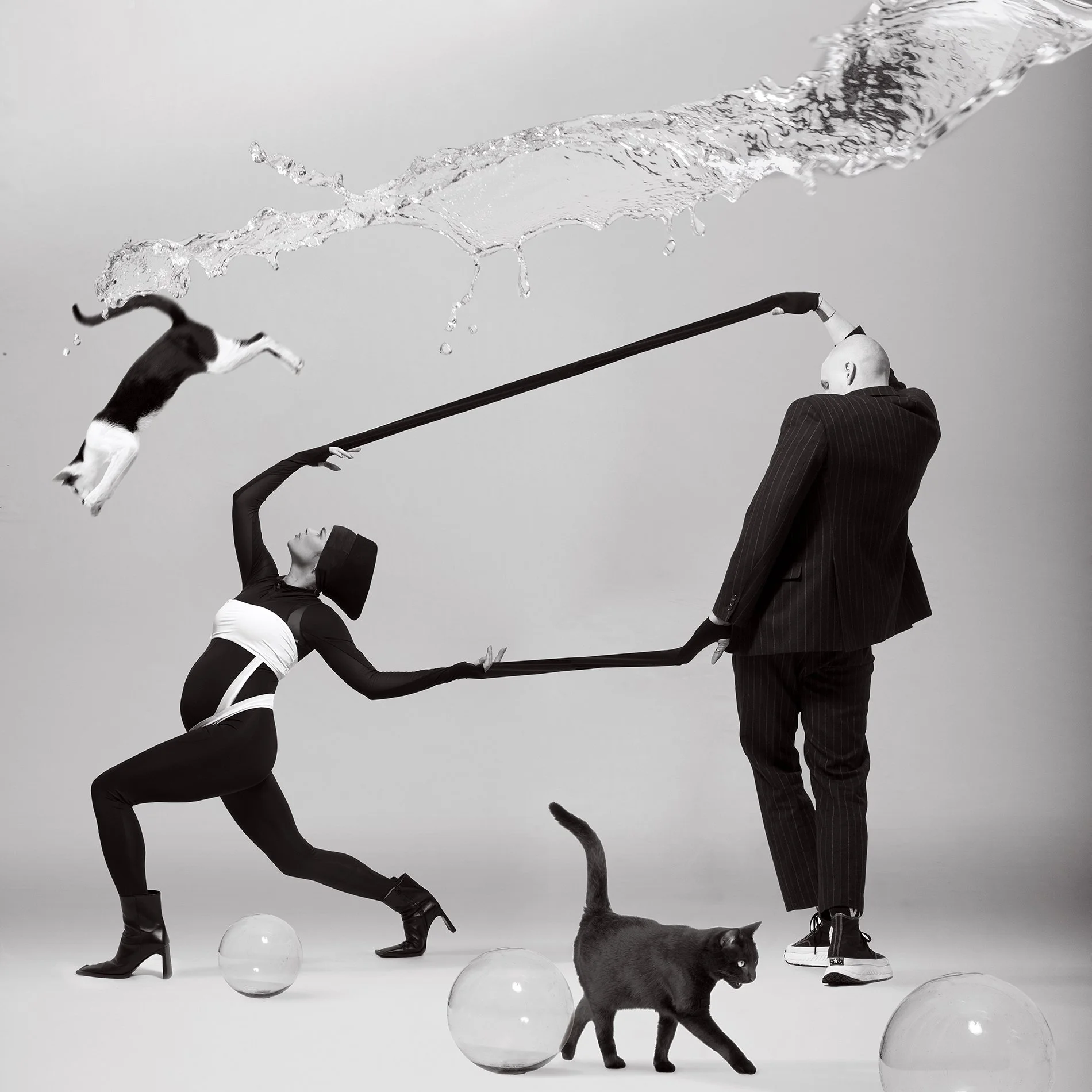 Surrealist Women with man and cats